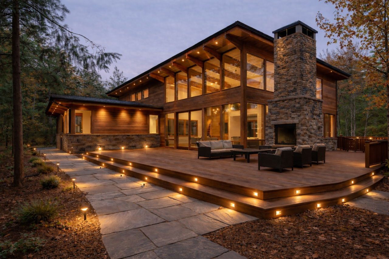 Architectural design also plays a key role in long-term care. Generous roof overhangs, eaves, and covered outdoor areas are incorporated to limit direct weather exposure and protect exterior wood surfaces. A well-designed roof and drainage system helps shield the structure from prolonged moisture contact and contributes significantly to overall longevity.